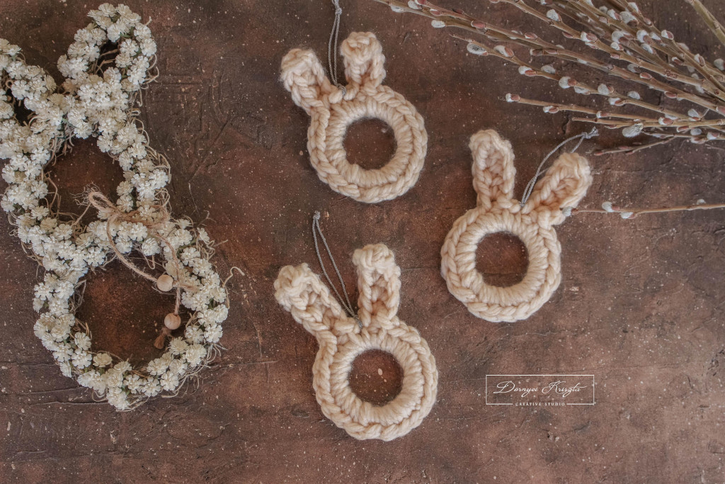 Bézs Horgolt Nyuszik - Húsvéti Dísz Szett